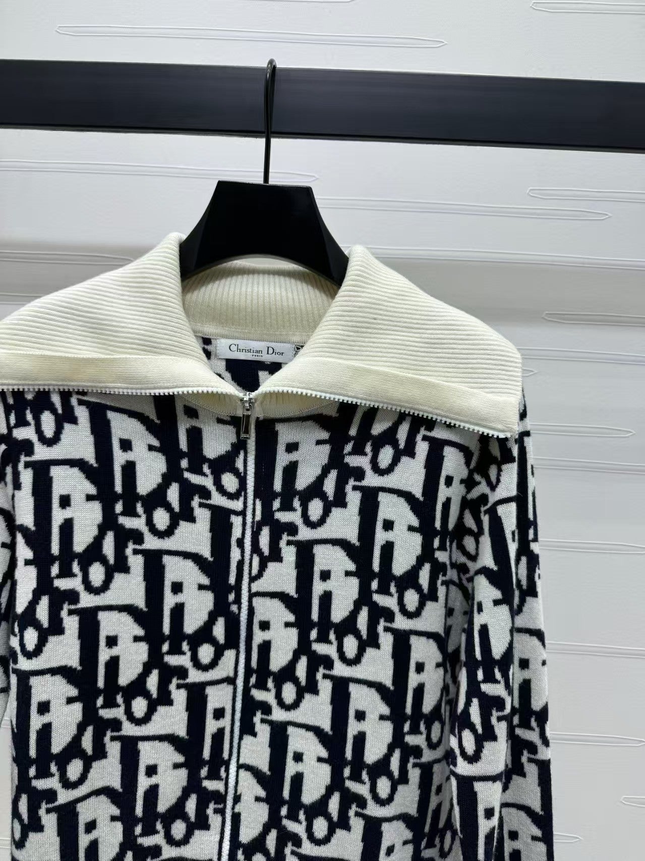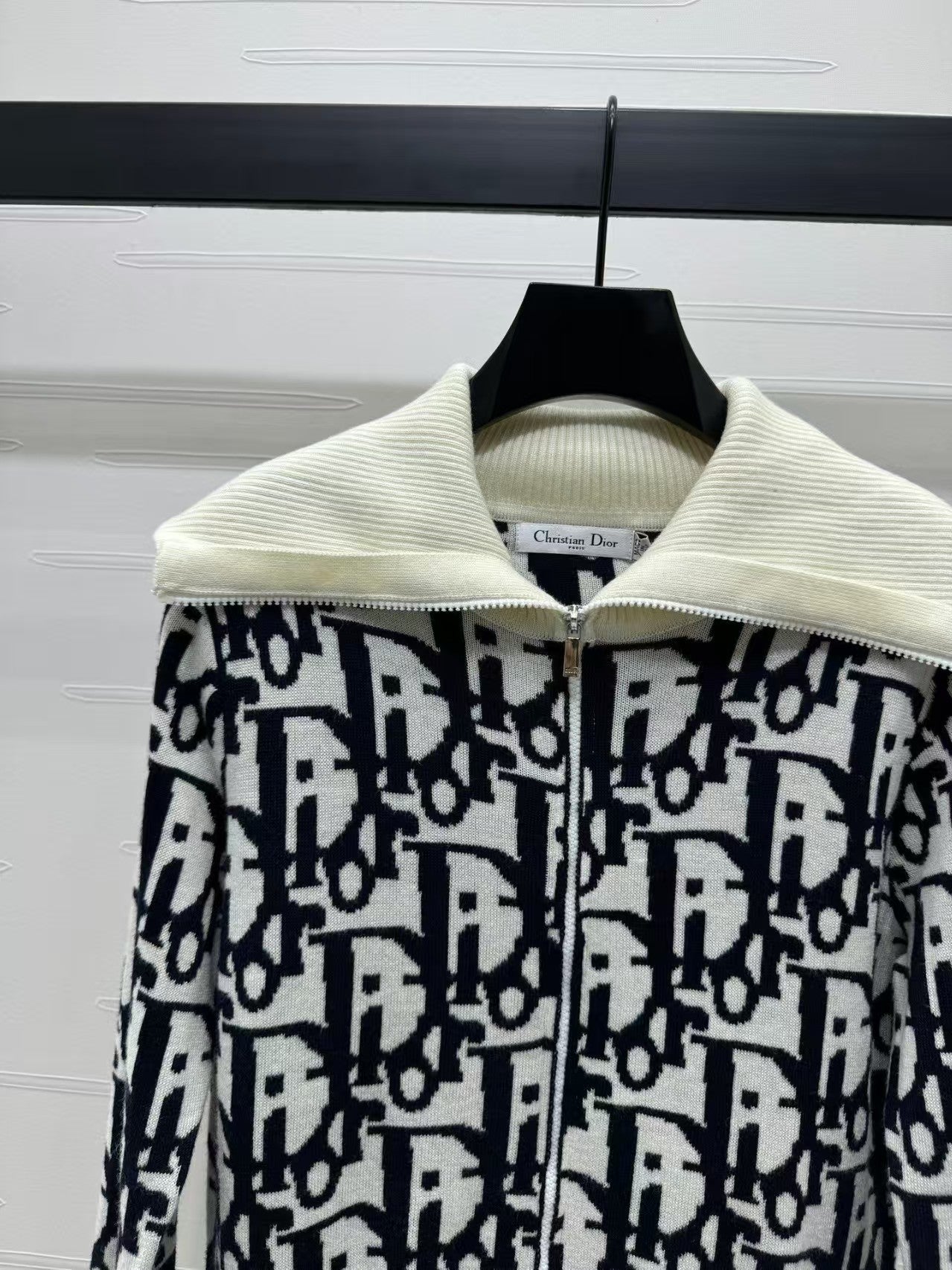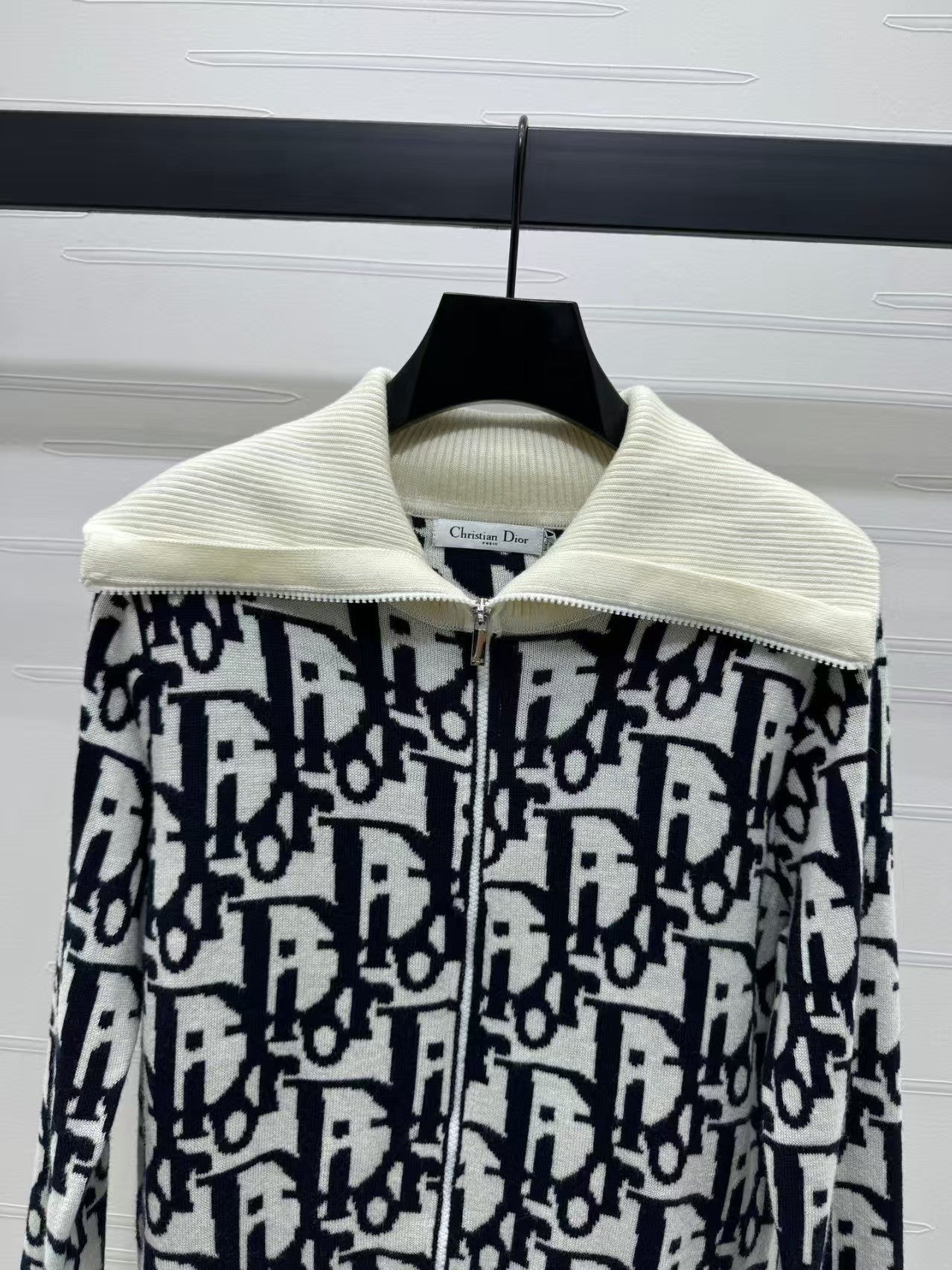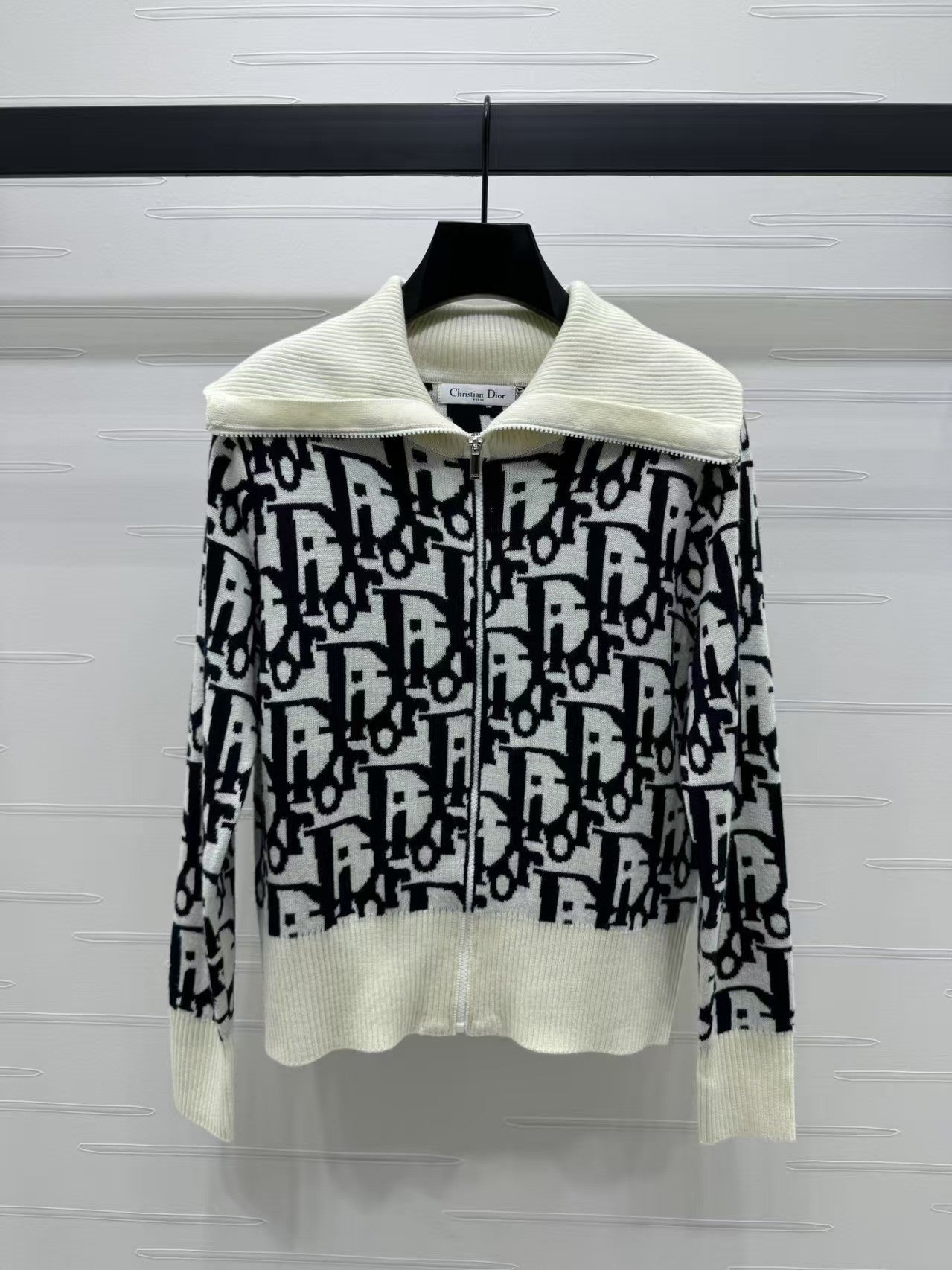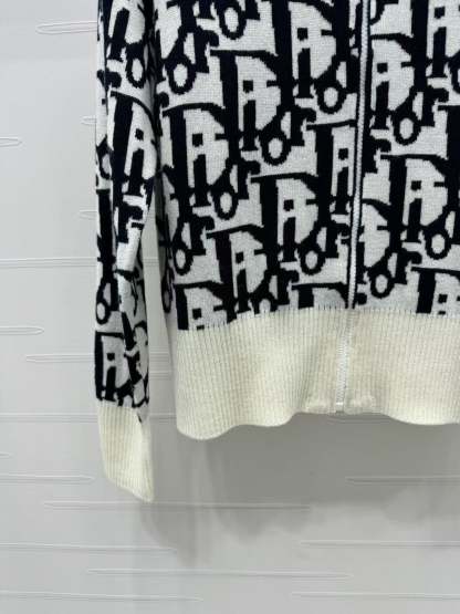 Contrast color stand collar knitted jacket
