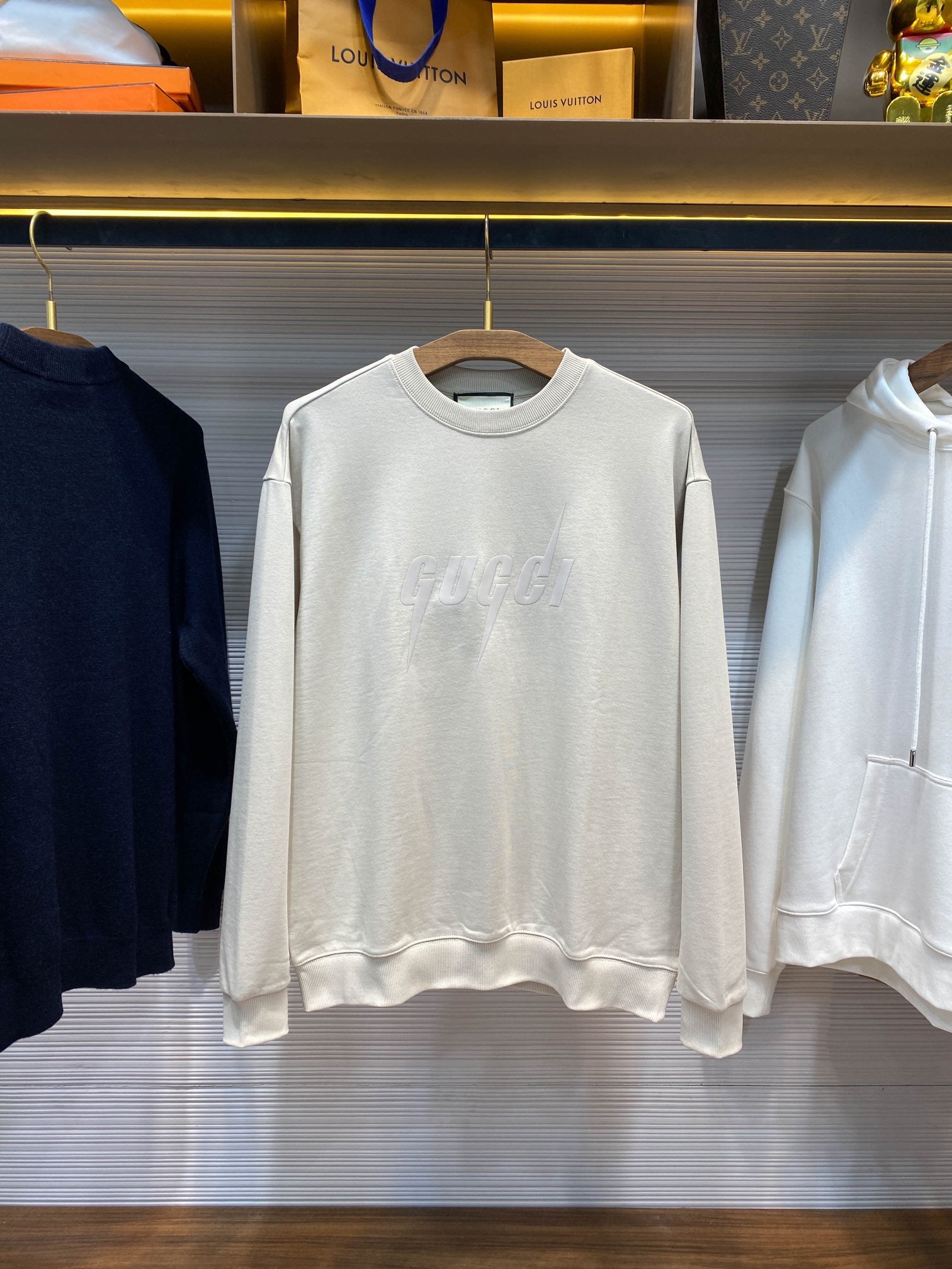 This sweatshirt is made of imported knitted terry cotton fabric, which is soft and delicate, making it more comfortable and breathable, and the feel and texture are impeccable! The front lightning blade logo printing highlights the freedom of fashion trends. It is printed with precisely controlled hot-melt plastic drops. Changes in temperature directly affect the gloss and elasticity of the offset printing. The precise offset printing body is smooth and delicate! The overall design is simple and full of unique charm, and the os version is more suitable for matching with various trendy fashion styles. It is an indispensable fashion tool for fashionable men and women in daily matching!