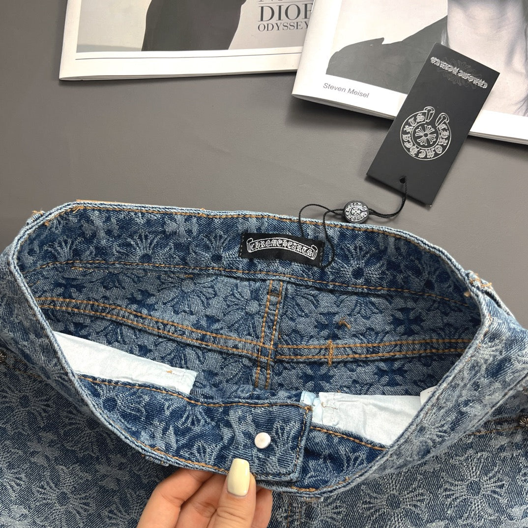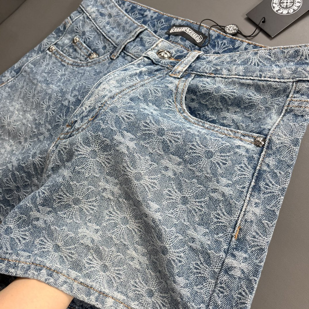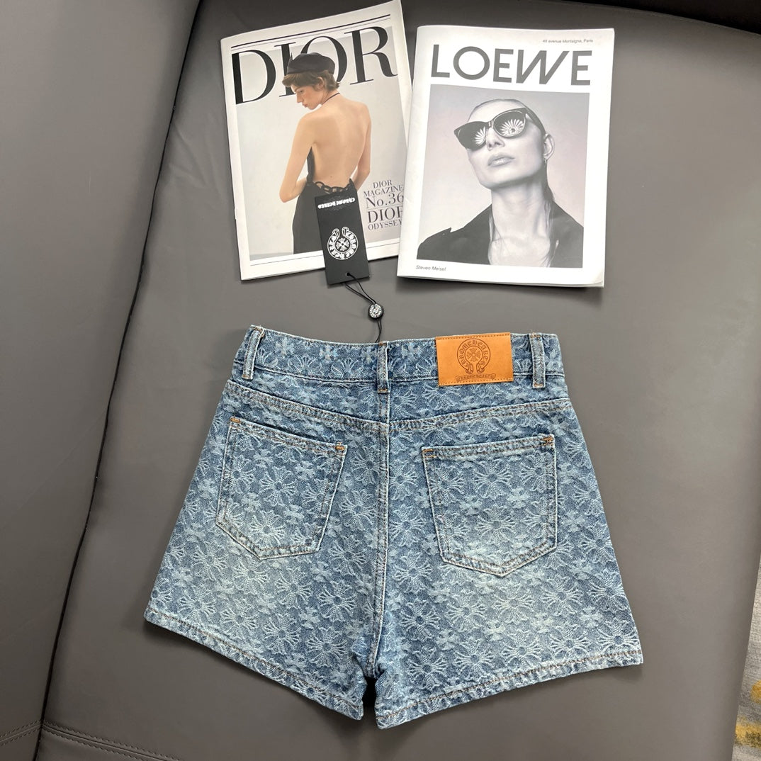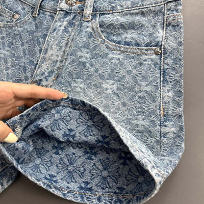 Old fashioned cross jacquard denim shorts